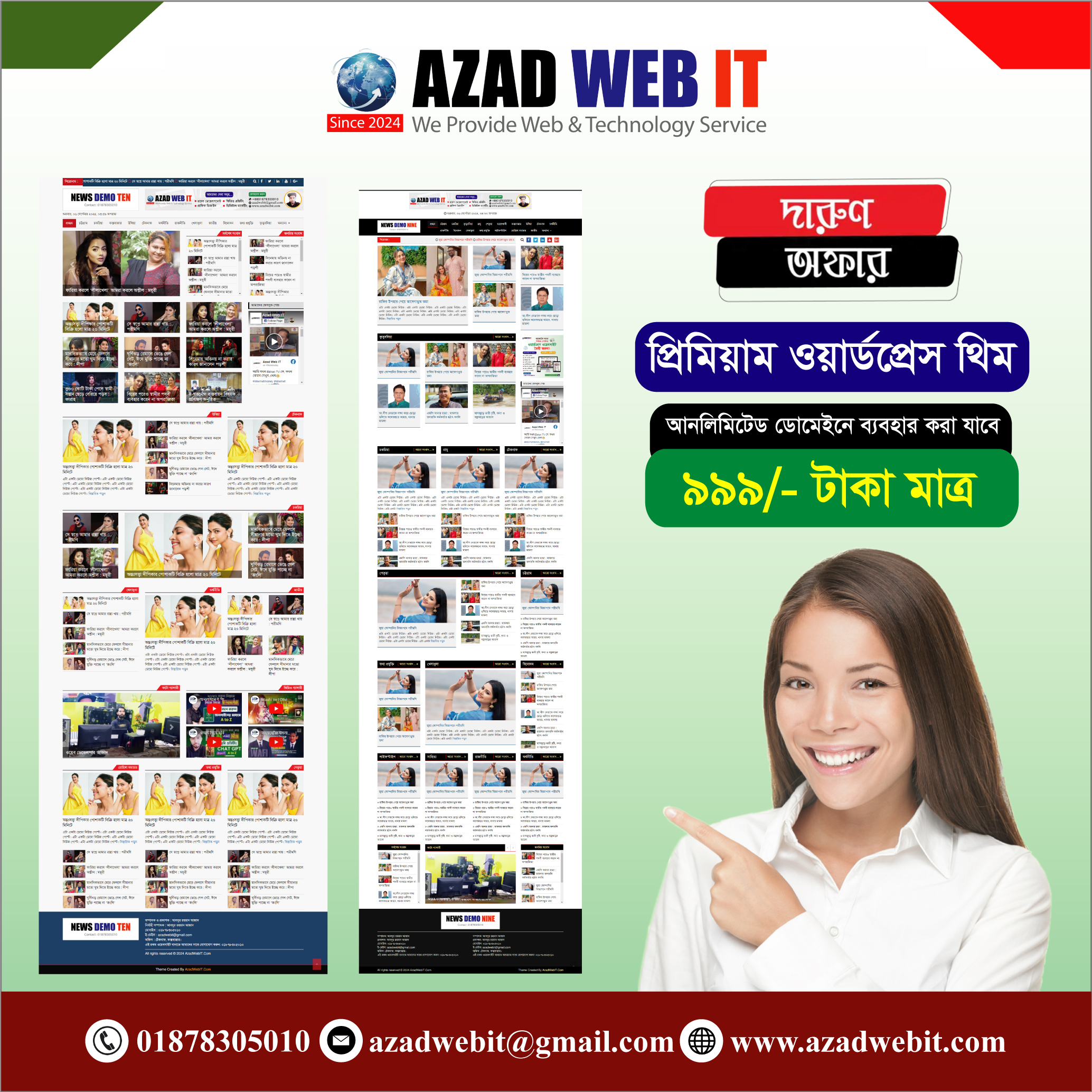 আমাদের থিম-এ ৫০% ছাড় চলছে। আমাদের থিম দিয়ে আপনারা বাংলা এবং ইংরেজি অনলাইন নিউজপেপার ওয়েবসাইট , অনলাইন ম্যাগাজিন ওয়েবসাইট এবং অনলাইন ব্লগ ওয়েবসাইট তৈরী করতে পারবেন। এই থিম গুলো সকল ডিভাইস-এর জন্য সম্পূর্ণ রেস্পন্সিভ। এই থিম গুলো ওয়ার্ডপ্রেস-এ তৈরী করা হয়েছে।