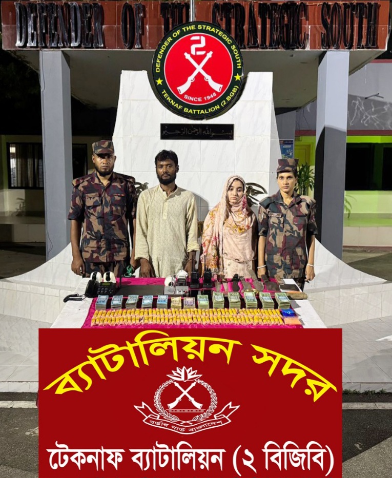 টেকনাফে এক বসত বাড়িতে টানা৮ঘণ্টার শ্বাসরুদ্ধকর অভিযান চালিয়ে ইয়াবা,দেশীয় অস্ত্র,ওয়াকিটকি ও মাদক বিক্রির নগদ টাকাসহ দুই জনকে আটক করেছে বর্ডার গার্ড বাংলাদেশ বিজিবি।